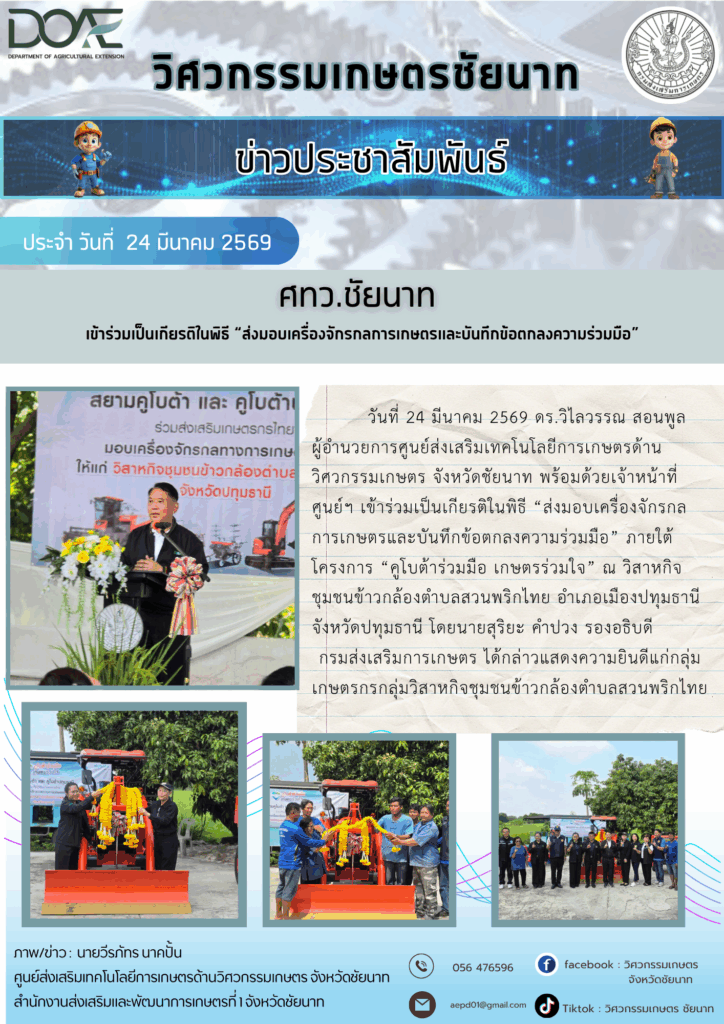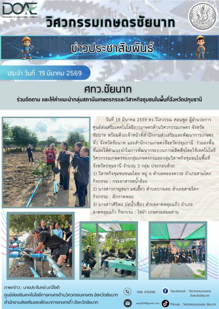 ข่าวประชาสัมพันธ์ศทว.ชัยนาท ร่วมติดตาม และให้คำแนะนำกลุ่มสถาบันเกษตรกรและวิสาหกิจชุมชนในพื้นที่จังหวัดปทุมธานี aepd01 / 23 มีนาคม 2026 วันที่ 19 มีนาคม 255
