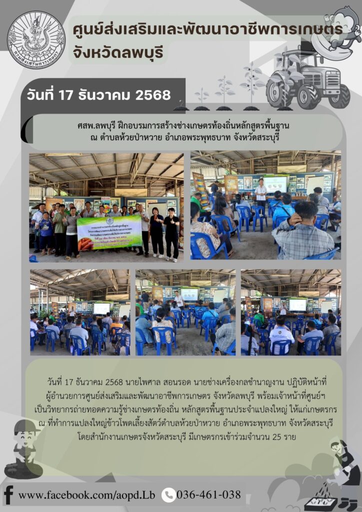 Uncategorized, ข่าวประชาสัมพันธ์ศสพ.ลพบุรี เข้าร่วมโครงการคลินิกเกษตรเคลื่อนที่ในพระราชานุเคราะห์ สมเด็จพระบรมโอรสาธิราชฯ สยามมกุฎราชกุมาร ครั้งที่1/2569 จังหวัดลพบุรี aopdh06 / ธันวาคม 17, 2025 วันที่ 17 ธันวาคม 25