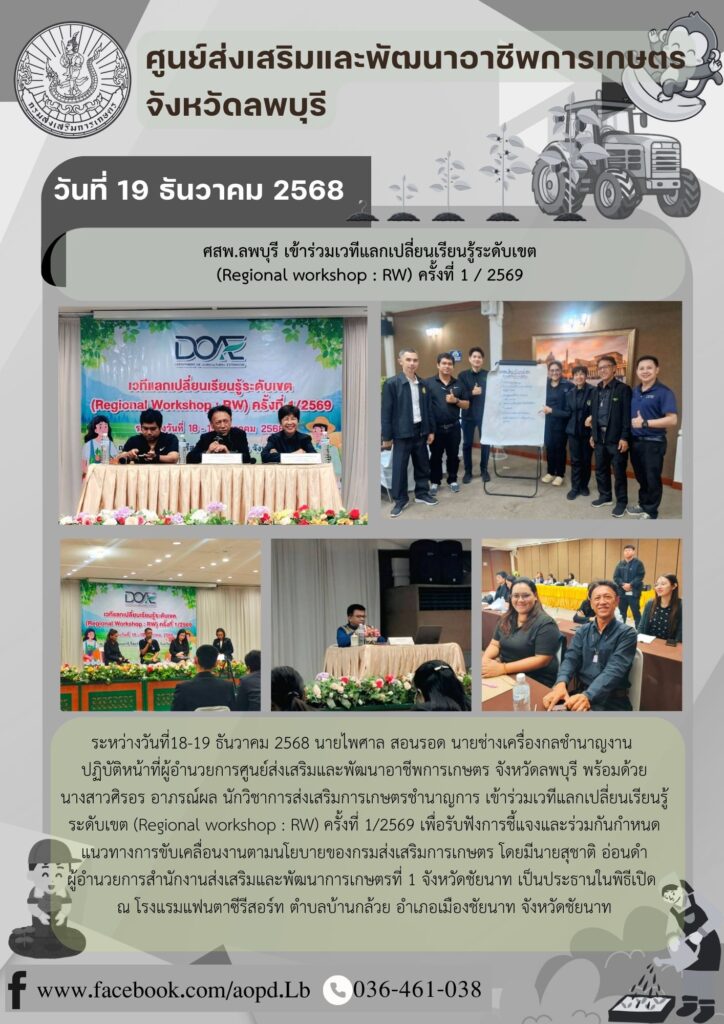 ข่าวประชาสัมพันธ์ศสพ.ลพบุรี เข้าร่วมเวทีแลกเปลี่ยนเรียนรู้ระดับเขต (Regional workshop : RW) ครั้งที่ 1 / 2569 aopdh06 / ธันวาคม 19, 2025 วันที่ 18-19 ธันวาคม […]